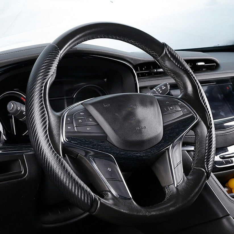 اللون: مظهر ألياف كربون أسود.المادة: ABS.الحجم: 32 × 3.8 سم.متوافقة مع معظم عجلات القيادة القياسية.مكان التثبيت: يمين أو يسار.الكمية: 2 قطعة.المرفقات: