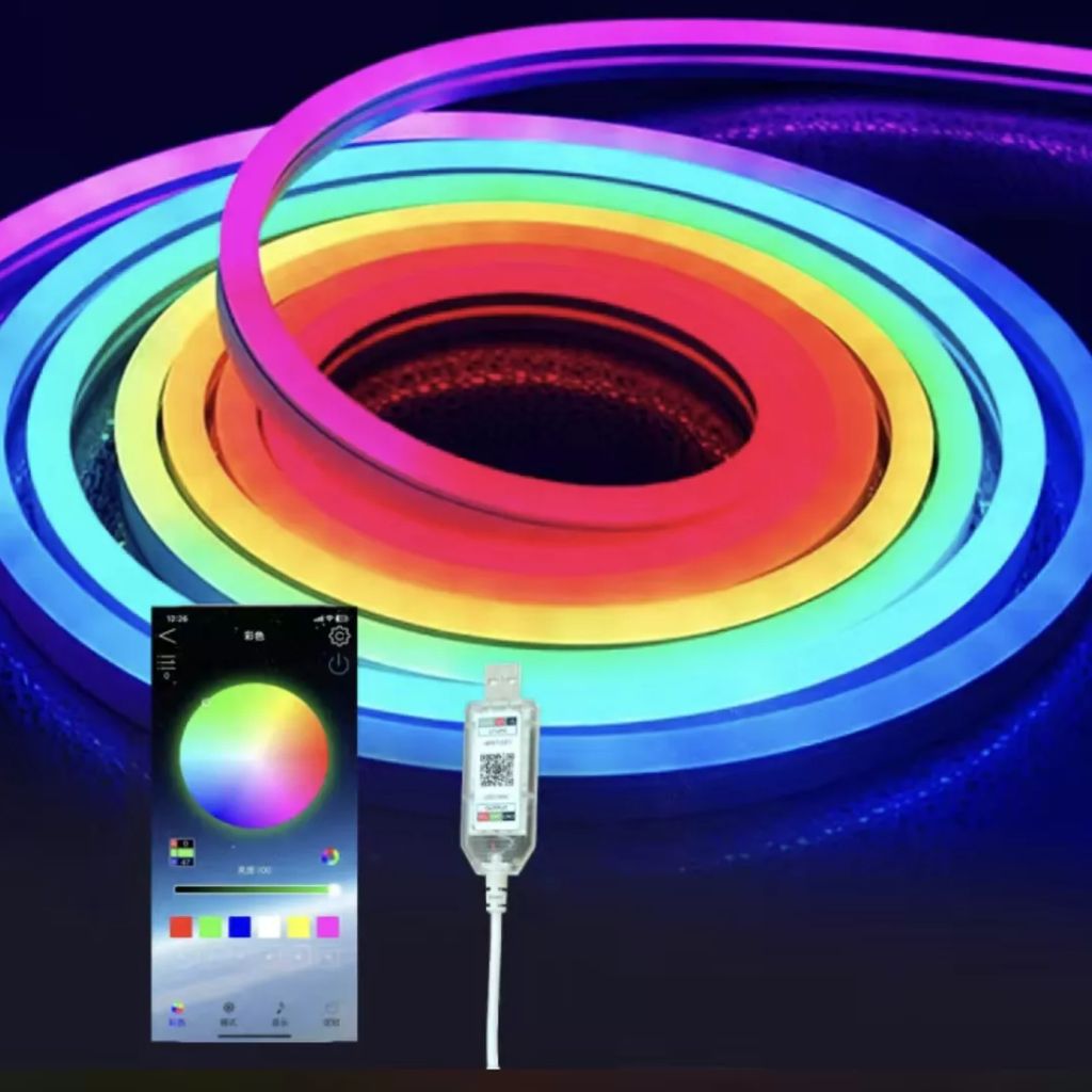 Bande LED Néon Flexible RGB 5m avec Bluetooth et USB – شريط إضاءة نيون مرن بطول 5 أمتار مع بلوتوث