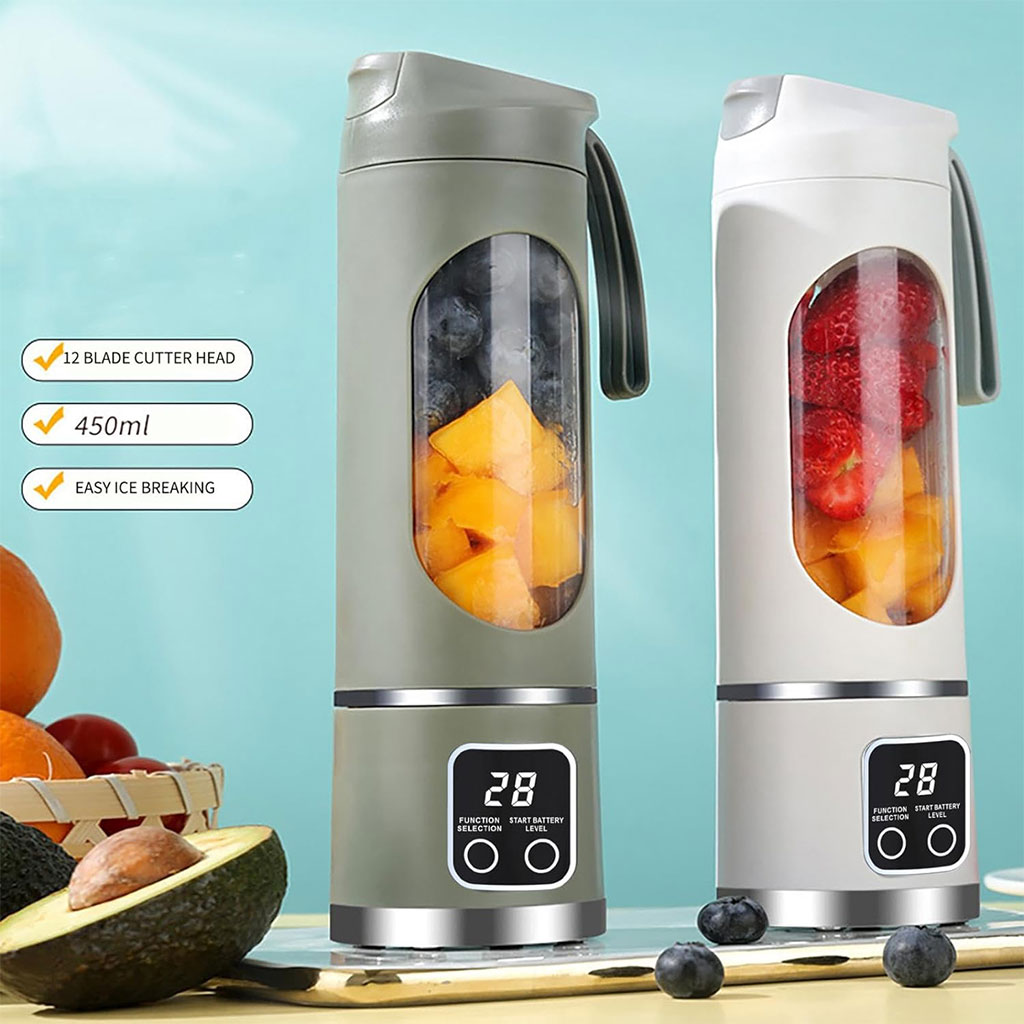 نظام حماية ذكي: يتوقف تلقائيًا عن العمل عند فصل الكوب عن القاعدة لمنع الإصابات، مع قاعدة مضادة للانزلاق وقفل أمان مدمج.شحن USB سعة 1500 مل: بطارية 1200mAh تُشحن خلال 3-4 ساعات من خلال بنك طاقة أو محول أو كمبيوتر، وتنتج 5 إلى 10 أكواب عند الشحن الكامل.عملي ومتنقل: مناسب لتحضير العصائر والمشروبات الصحية، القهوة، أو مسحوق الحليب، ويمكن استخدامه كزجاجة عادية.تنظيف سهل: أضف ماء وصابونًا واضغط الزر ليقوم الجهاز بالتنظيف الذاتي، ثم اشطفه بالماء.محرك قوي وشفرات متينة: محرك 200 واط مع 6 شفرات فولاذ مقاوم للصدأ لتقطيع الفواكه وسحق الثلج.