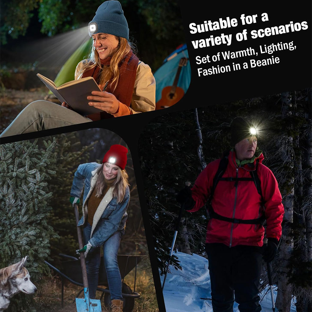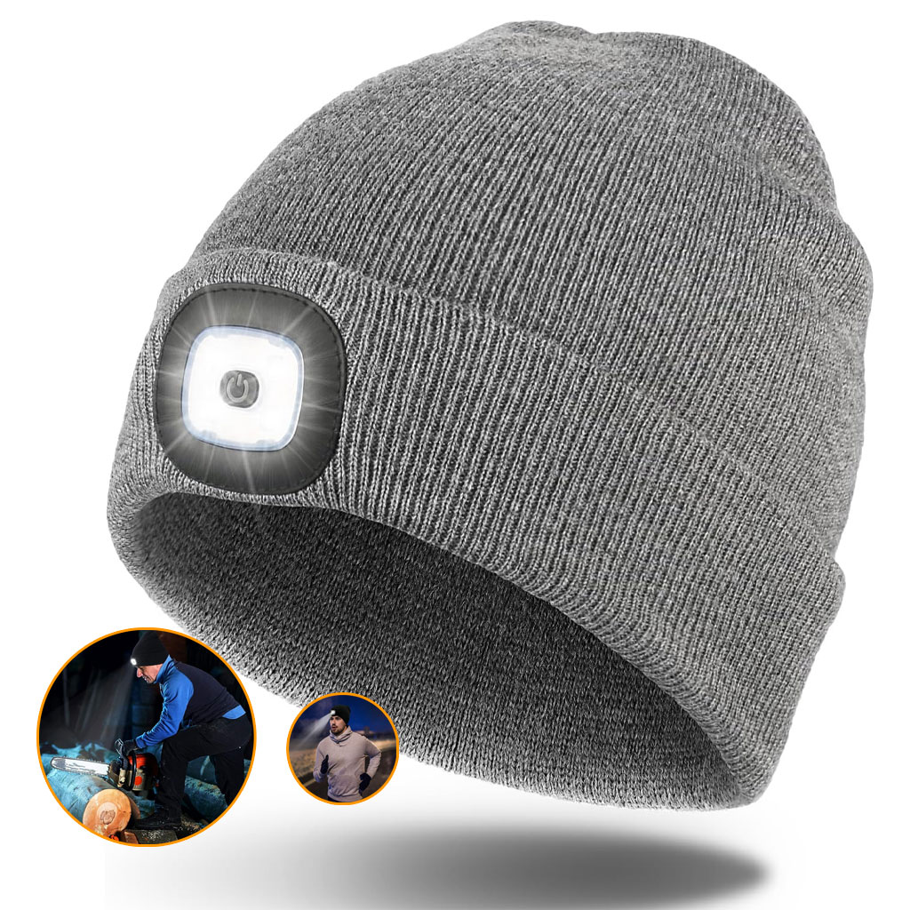 قبعة شتوية بإضاءة LED قابلة للشحن