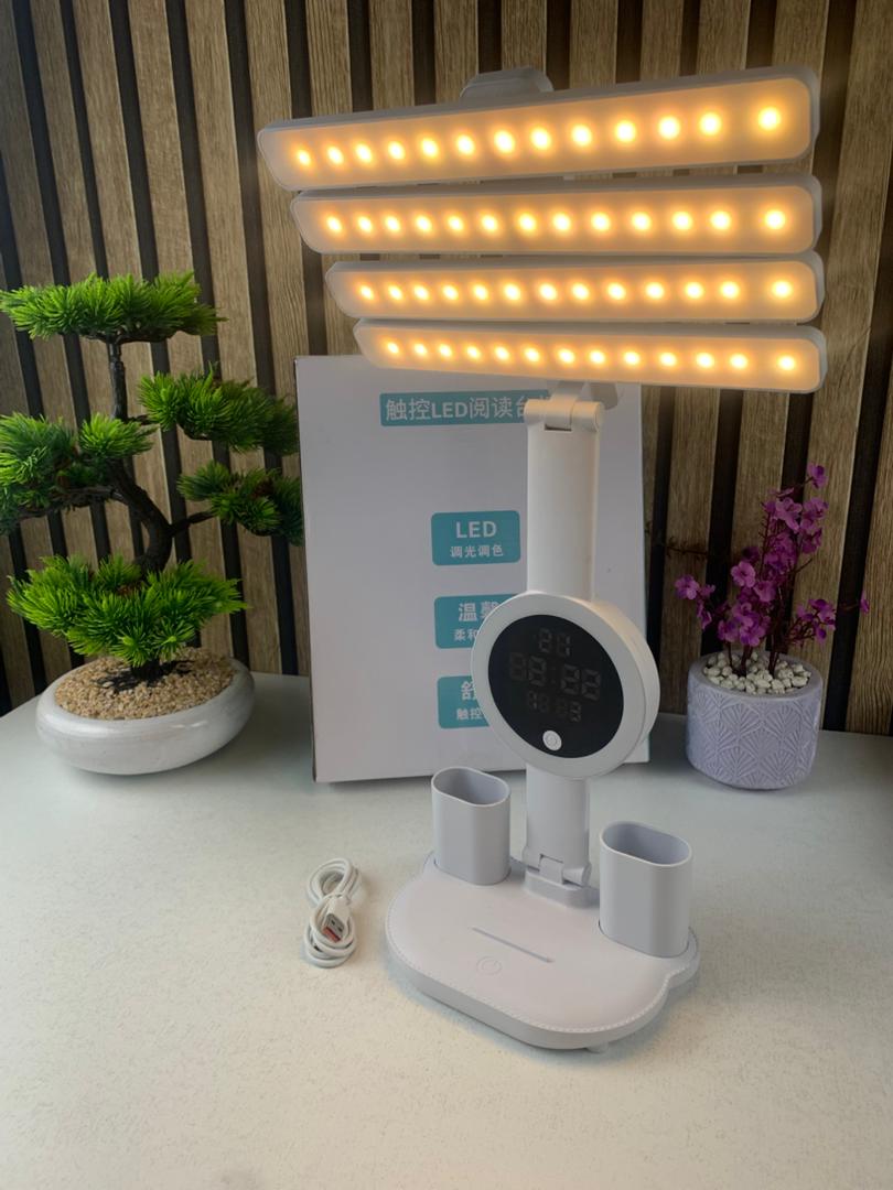 أضف لمسة من الحداثة والأناقة إلى مكتبك مع مصباح المكتب الذكي LED المزود بإضاءة محيطة ناعمة وشاشة رقمية مدمجة. مثالي للطلاب، المهنيين أو عشاق القراءة الذين يبحثون عن إضاءة مريحة وعملية في نفس الوقت.
