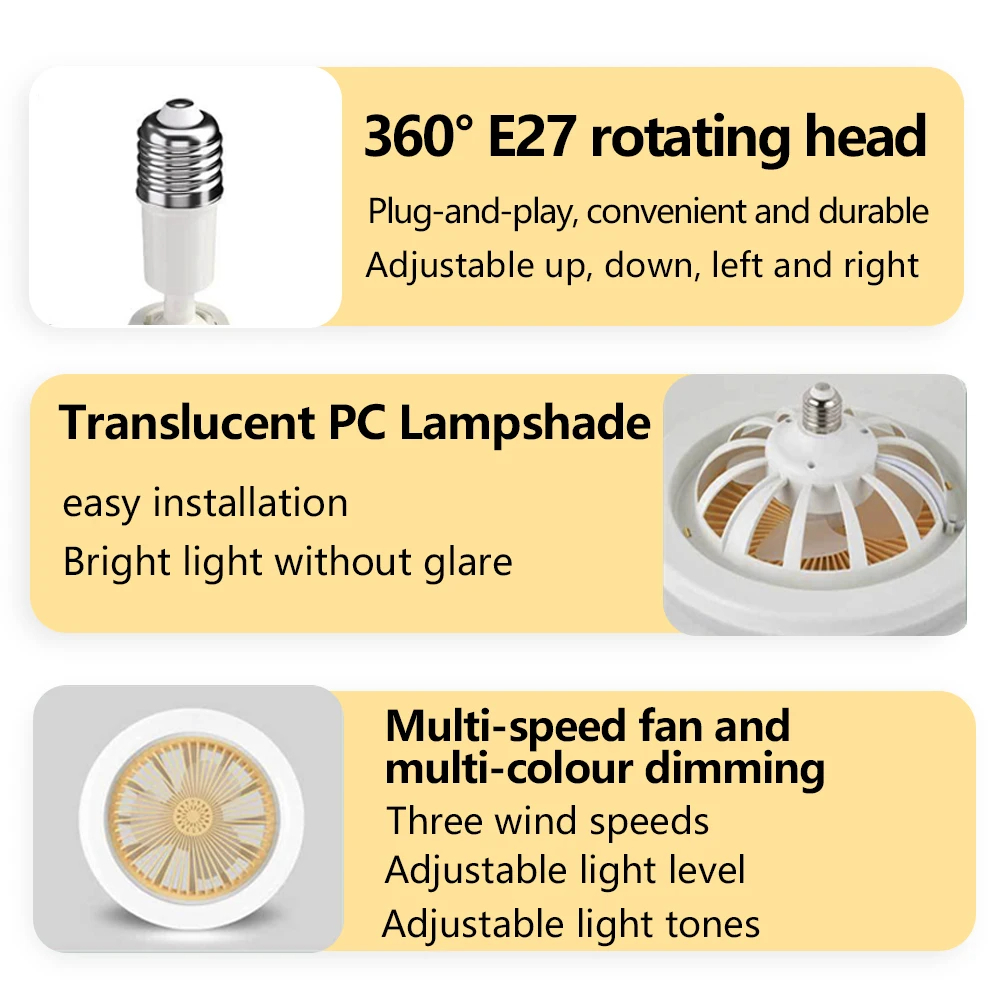 سرعات المروحة: نسيم خفيف 🌬️ / سرعة متوسطة ⚡ / هواء قوي 💨أوضاع الإضاءة: ضوء أبيض ❄️ / ضوء دافئ 🔥 / ضوء طبيعي 🌿