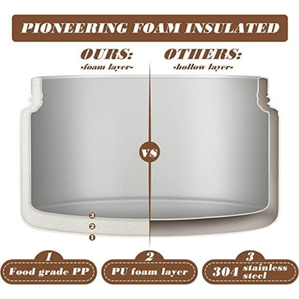 عزل حراري فعال يحافظ على الطعام ساخناً أو بارداً لساعات.