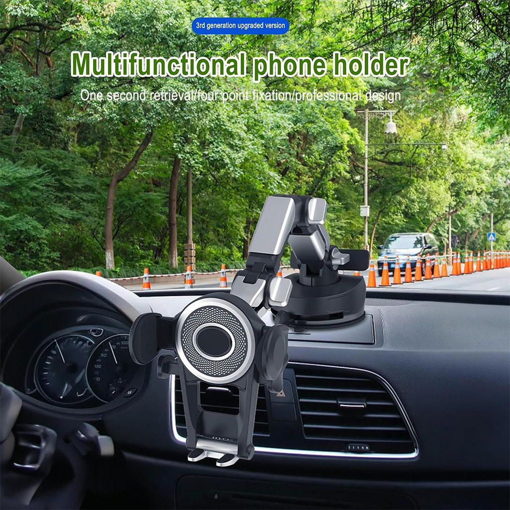 ⭐ المميزات الرئيسية :🔄 دوران كامل 360° : تحكم في زاوية الرؤية كما تحب.📱 متوافق مع جميع الهواتف : يدعم الهواتف الذكية حتى ‎6.8 بوصة.🛡️ ثبات قوي : أذرع مضادة للانزلاق + نظام قفل بالمسمار لضمان ثبات حتى في الطرق المهزوزة.📏 ذراع تلسكوبي قابل للتعديل : يتمدد وينحني حسب حاجتك، مثالي لاستعمال الـGPS أثناء القيادة.🧲 قاعدة شفط قوية : تثبيت آمن على الزجاج الأمامي أو لوحة القيادة.⚡ تركيب سهل بدون أدوات : قابل لإعادة الوضعية في أي وقت.